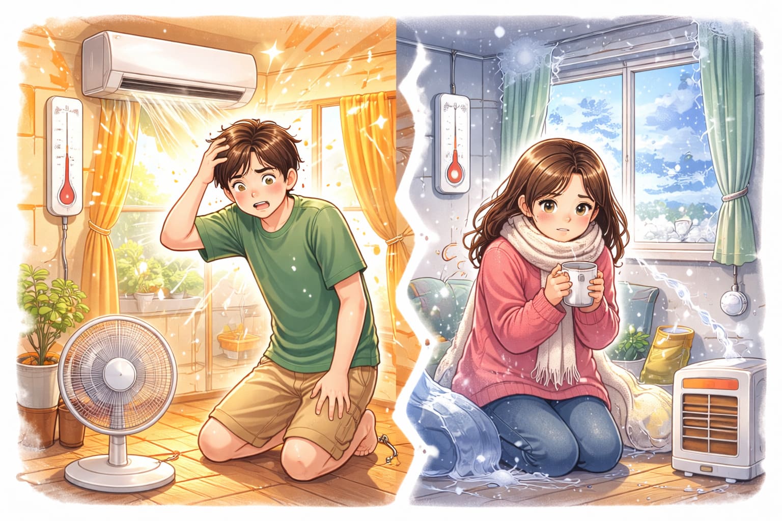 このような症状がある場合、エアコンの性能以前に、断熱性や気密性が十分でない可能性があります。