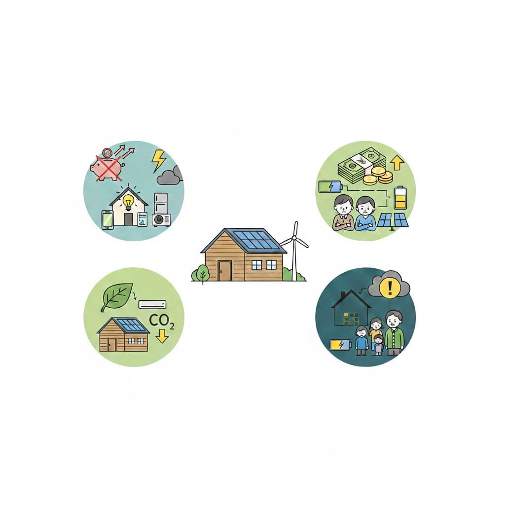 この仕組みにより、電気代の変動や停電の影響を受けにくくなり、生活の安定性が高まります。