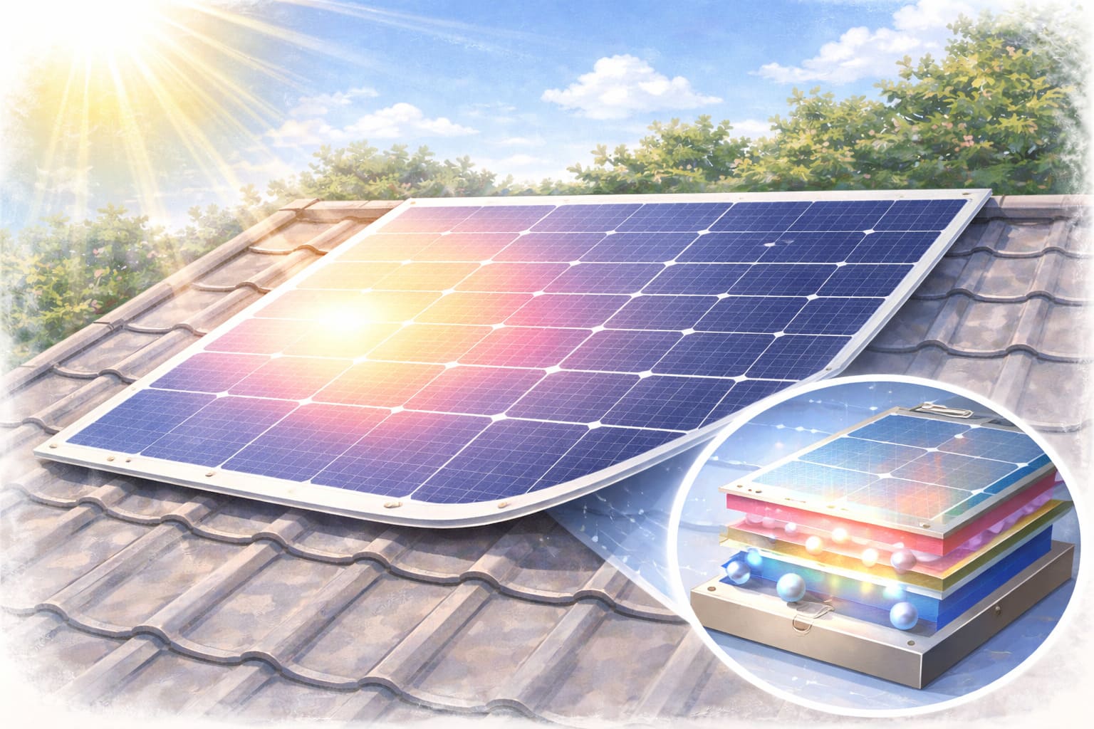 従来のガラスパネルに比べて薄く、軽量で、屋根への負担が少ないとされる一方で、